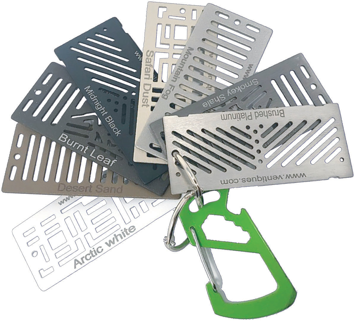 Mini samples of Ventiques that showcase our different color options and grille patterns.